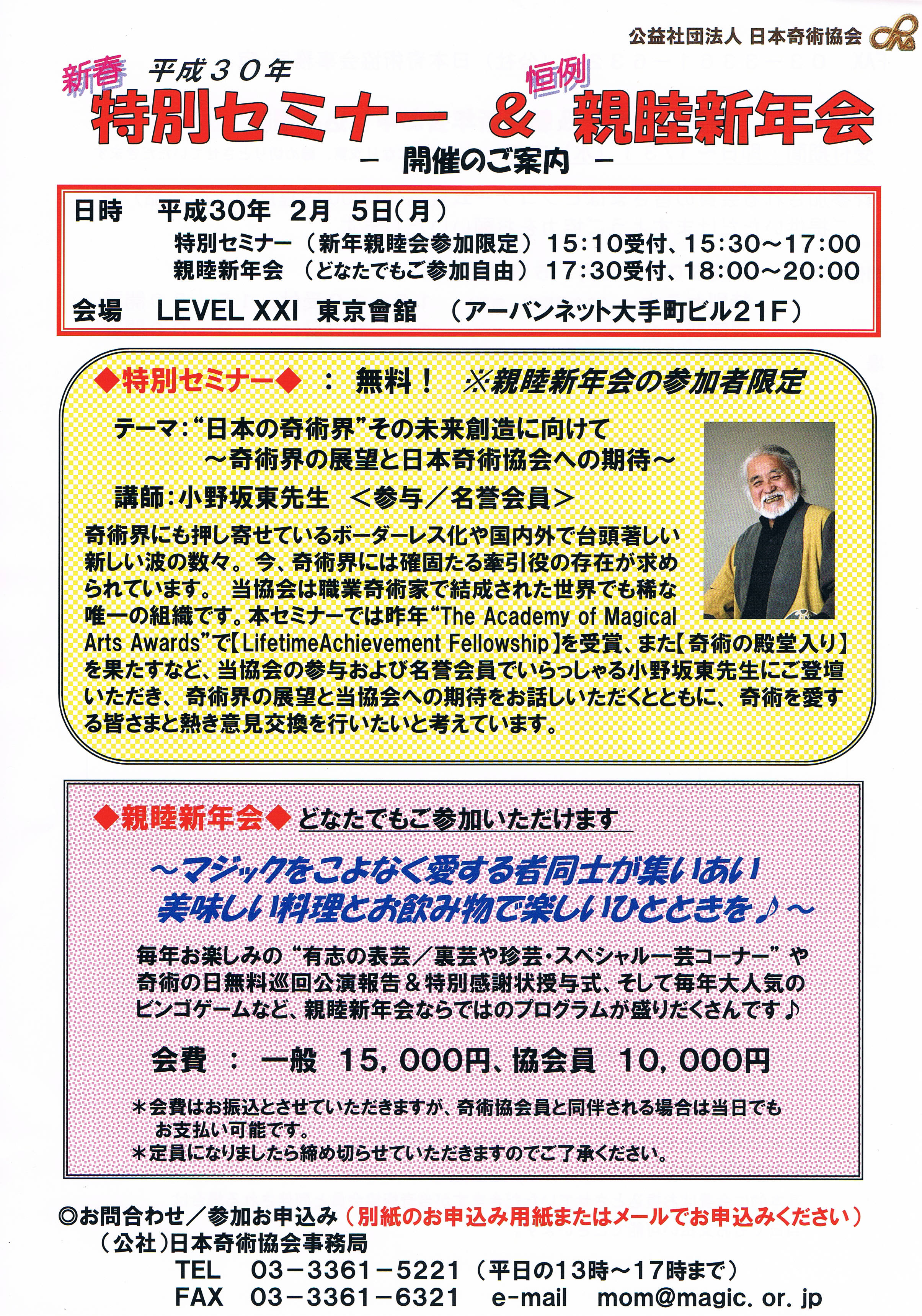 小野坂東先生 特別セミナー(新年親睦会参加者限定)15:10受付 15:30~17:00