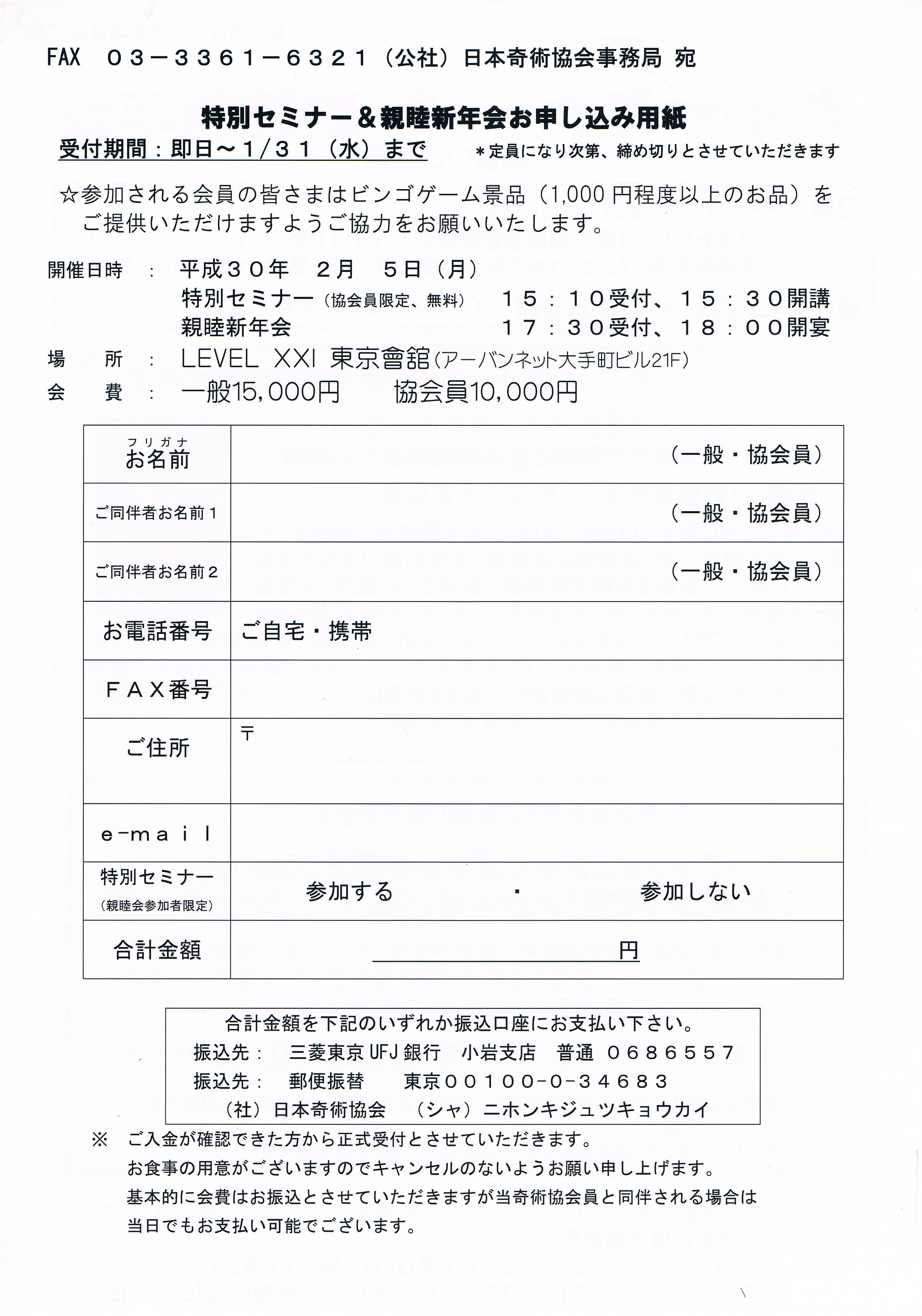 会費:一般15,000円 奇術協会員10,000円